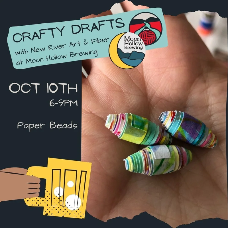 Moon Hollow Brewing presents Crafty Drafts featuring the craft "Paper Beads" with New River Art & Fiber on Thursday, October 10, 2024.