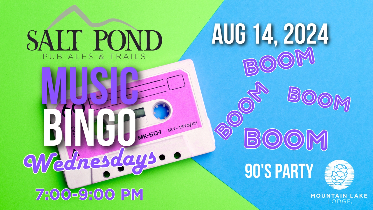 Mountain Lake Lodge presents Music Bingo Wednesdays with the theme 90's Party on Wednesday, August 14, 2024 at the Salt Pond Pub.