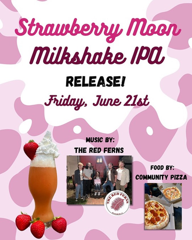 Moon Hollow Brewing presents the Strawberry Moon Milkshake IPA Release with Live Music from The Red Ferns on Friday, June 21, 2024.