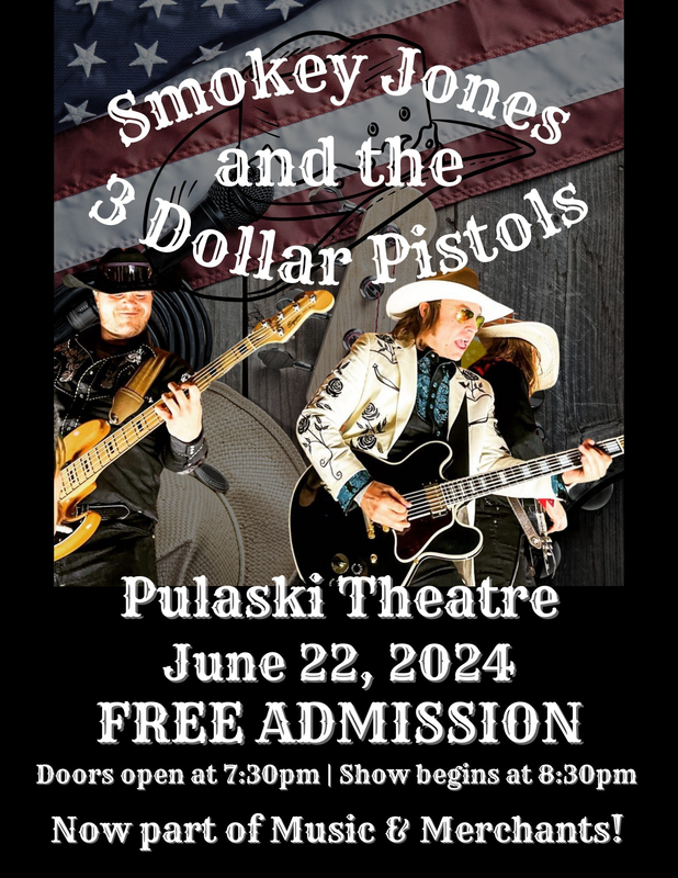 The Pulaski Theatre presents Smokey Jones & The 3 Dollar Pistols in concert on Saturday, June 22, 2024.