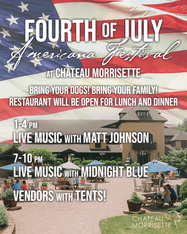Chateau Morrisette presents their Fourth of July Americana Festival with Live Music and Vendors on Thursday, July 4, 2024.