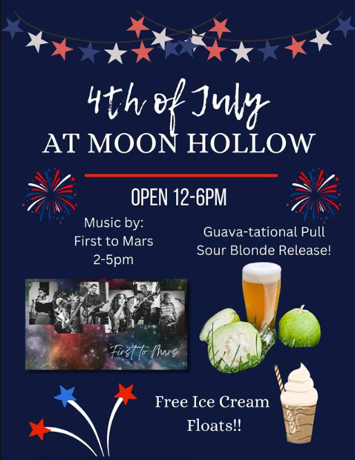Moon Hollow Brewing presents their 4th of July Celebration on Thursday, July 4, 2024.