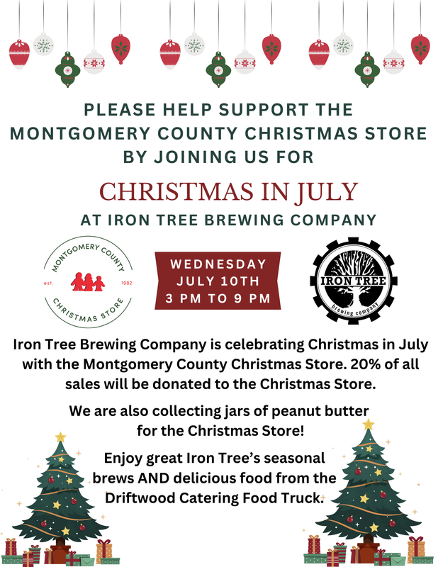 Iron Tree Brewing Company is celebrating Christmas in July with the Montgomery County Christmas Store. Twenty percent of all sales will be donated to the Christmas Store.