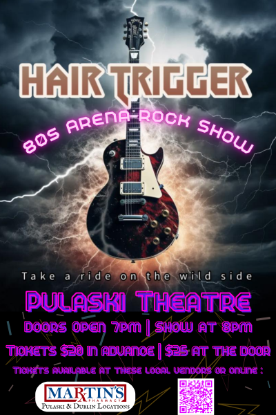 join us at the Pulaski Theatre for Hair Trigger's first appearance! A super high-energy band that is sure to please with your favorite 80s hits specializing in 80s arena rock!