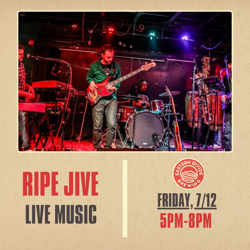 Eastern Divide Brewing presents Ripejive in concert on Friday, July 12, 2024.