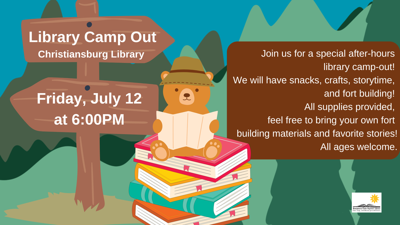 The Christiansburg Library presents a Library Camp Out on Friday, July 12, 2024.