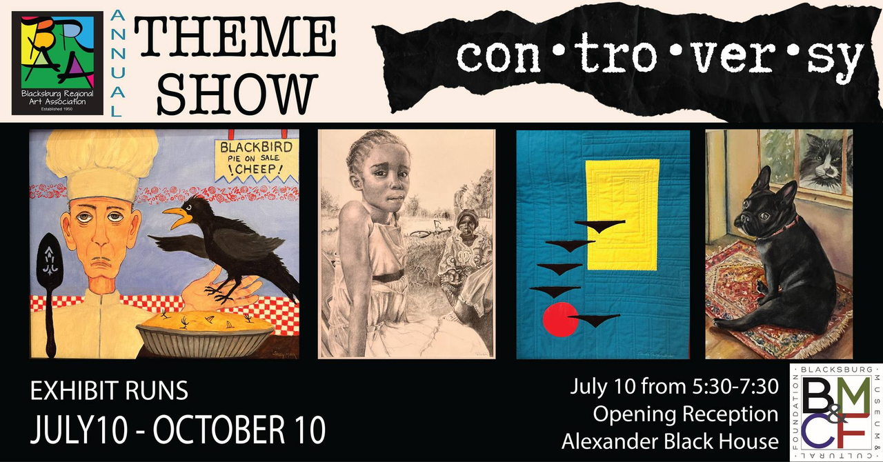 Help us celebrate Blacksburg Regional Art Association artists as they open the organization's annual juried and judged theme show. This year's theme is controversy and the show, with a total of 40 pieces, certainly covers a range of topics.