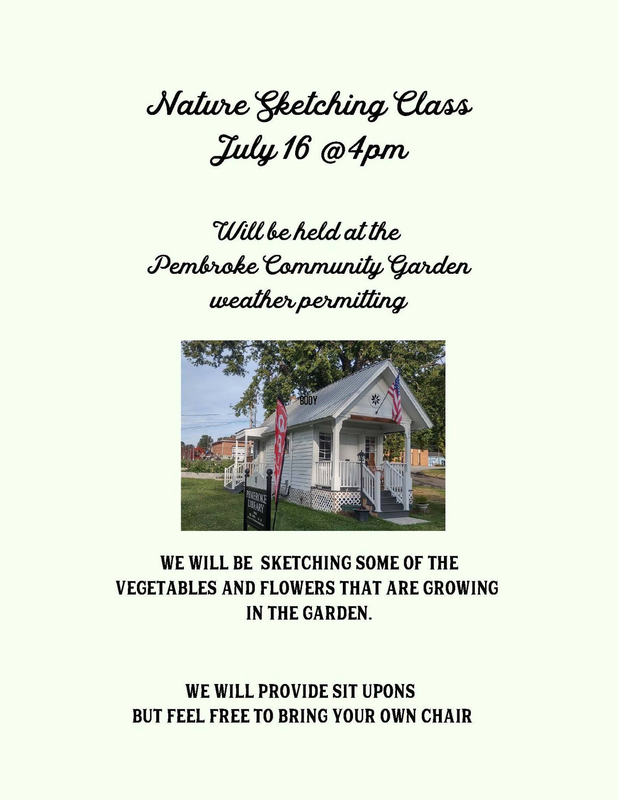 Pembroke Library presents a Nature Sketching Class on Tuesday, July 16, 2024.