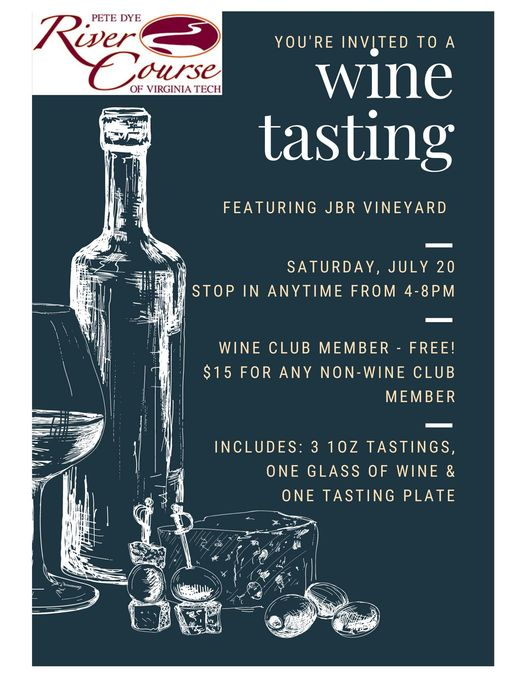 The Pete Dye River Course presents a Wine Tasting featuring JBR Vineyards on Saturday, July 20, 2024.