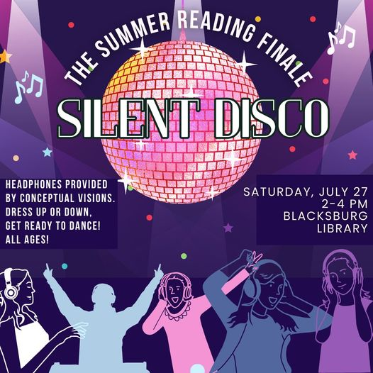 The Blacksburg Library hosts the Silent Disco: Summer Reading Finale on Saturday, July 27, 2024.