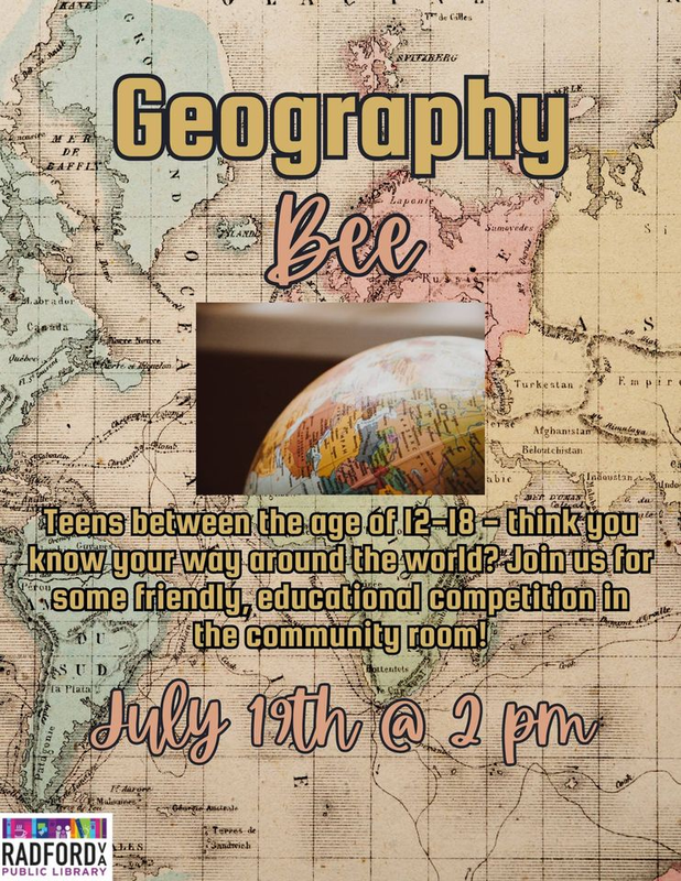 The Radford Public Library presents Teen Geography Bee on Friday, July 19, 2024.
