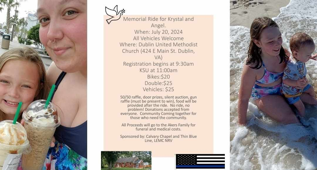 All vehicles are invited to join the Memorial Ride and Fundraiser for Krystal and Angel of the Akers Family to raise funds for both funeral and medical costs.