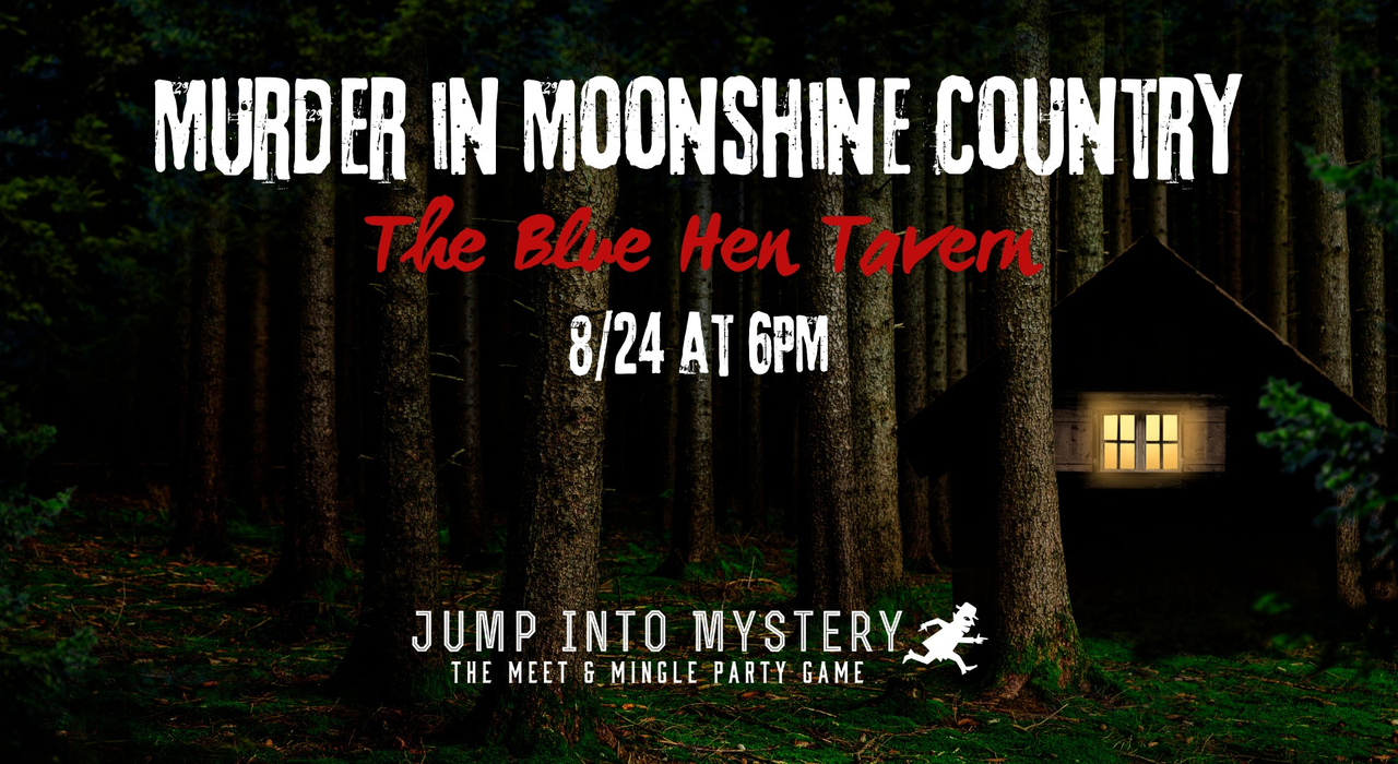 Jump into Mystery presents Murder in Moonshine Country on Saturday, August 24, 2024 at The Blue Hen in Christiansburg, VA.