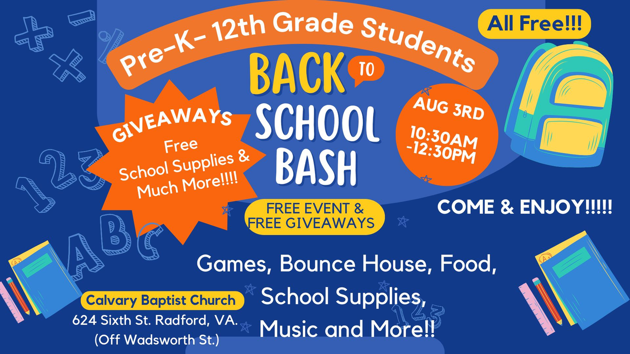 Calvary Baptist Church presents their Annual Back To School Bash on Saturday, August 3, 2024.