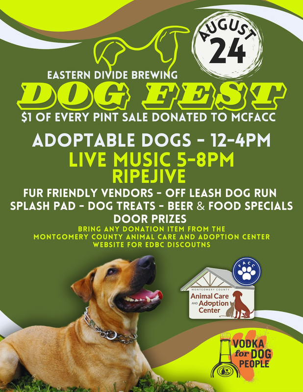 We are celebrating all things dog at our 4th annual Dog Fest! $1.00 of every pint sold will be donated to the Montgomery County Friends of Animal Care and Control.
