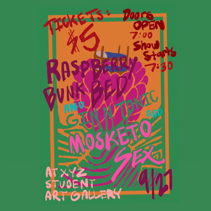 XYZ Art Gallery presents a Three Band Concert with Raspberry Bunk Bed, Gin N Tonic and Mosketo Sex on Friday, September 27, 2024.