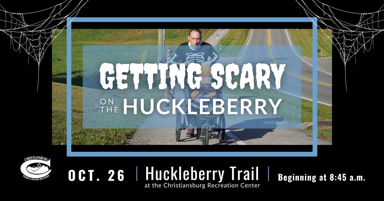 The Christiansburg Department of Parks and Recreation and Town of Christiansburg presents the annual Getting Scary on the Huckleberry 5k, One Mile Kids Fun Run and Truck or Treat on Saturday, October 26, 2024 starting and ending at the Christiansburg Recreation Center.