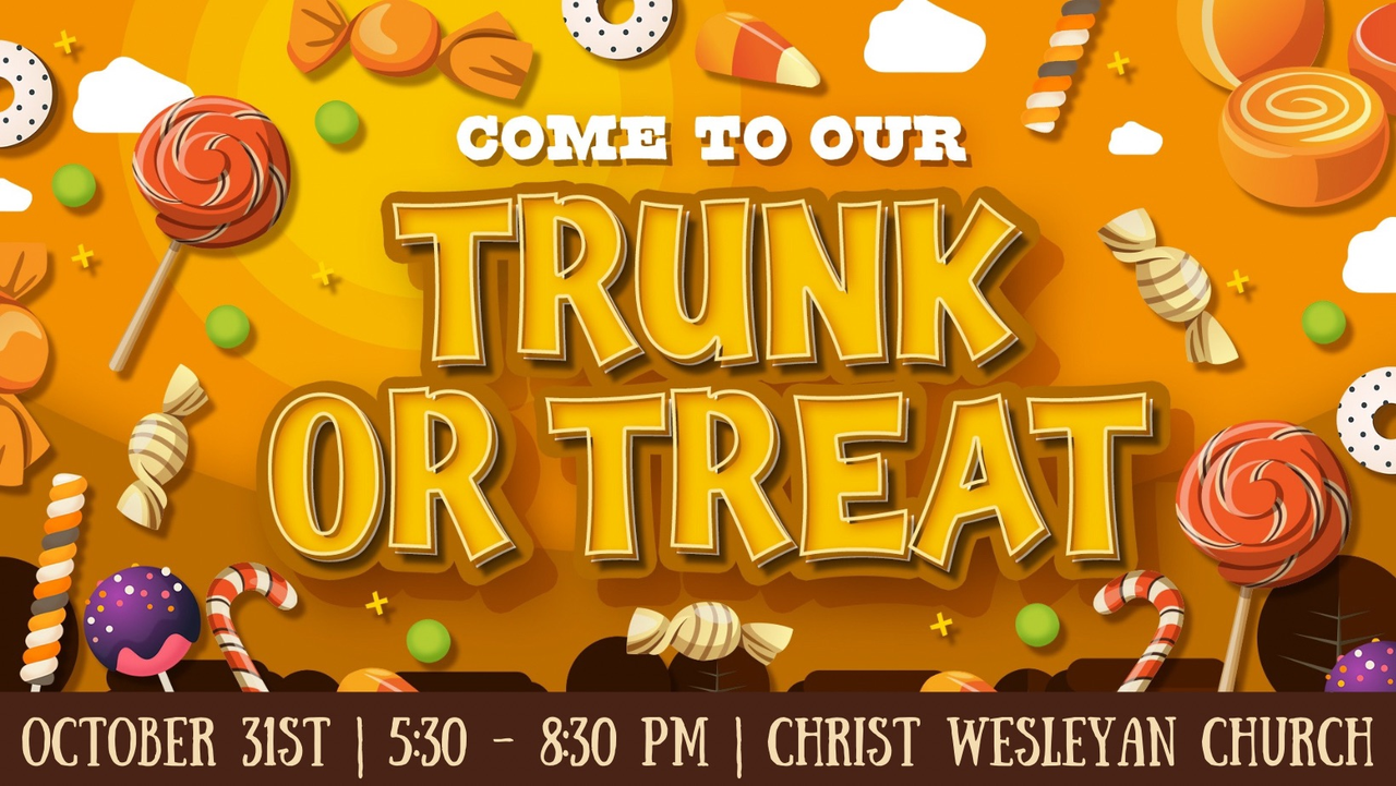 Christ Wesleyan Church presents their 2024 Trunk or Treat on Thursday, October 31, 2024.