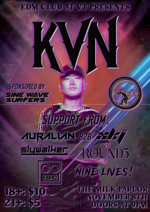 The EDM Club at Virginia Tech presents KVN on Friday, November 8, 2024 at The Milk Parlor.