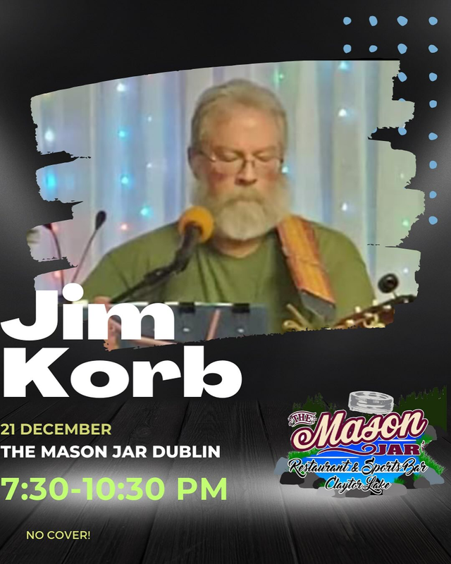 The Mason Jar at Claytor Lake presents Jim Korb in concert on Saturday, December 21, 2024.