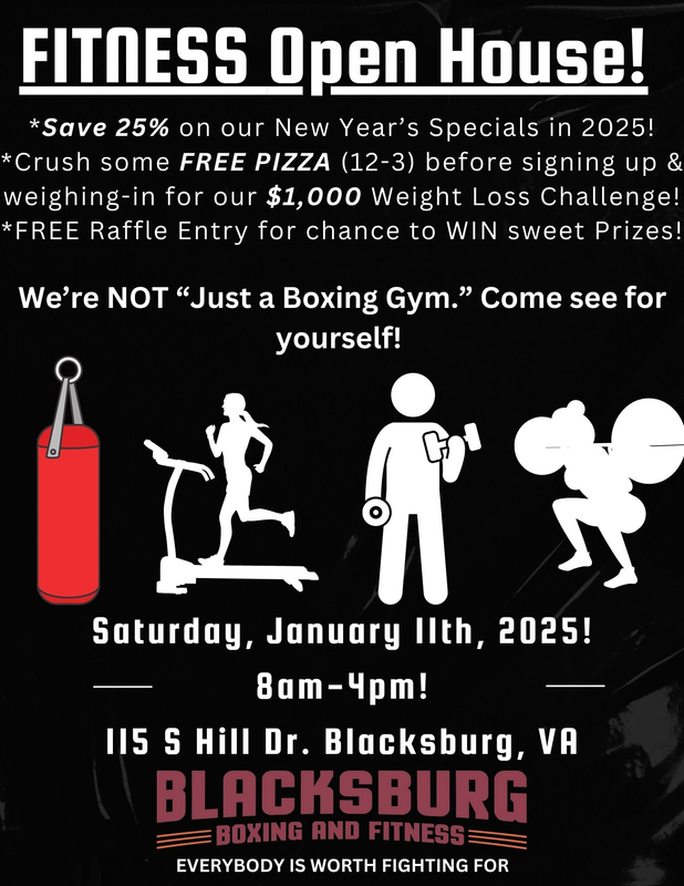 Blacksburg Boxing and Fitness presents their 2025 Fitness Open House on Saturday, January 11, 2025.