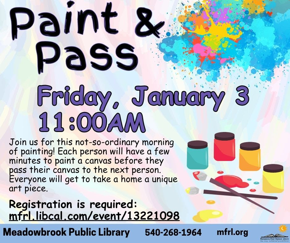 Meadowbrook Public Library presents Paint and Pass on Friday, January 3, 2025.