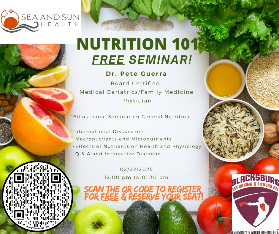 Blacksburg Boxing and Fitness hosts a free special Nutrition 101 Seminar on Saturday, February 22, 2025.