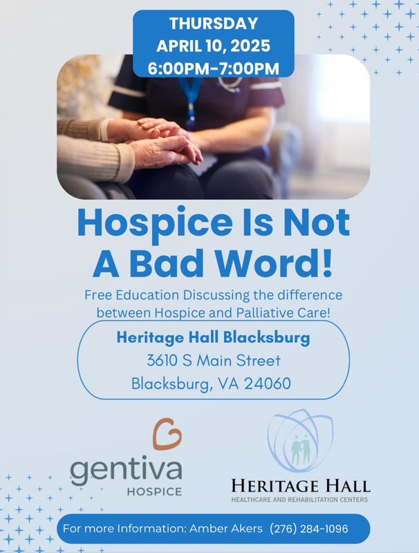 Heritage Hall presents a Free Educational Seminar titled "Hospice is Not a Bad Word" on Thursday, April 10, 2025.