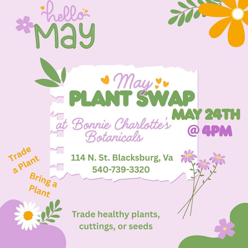 Bonnie Charlotte's Botanicals presents their May Plant Swap on Saturday, May 24, 2025.