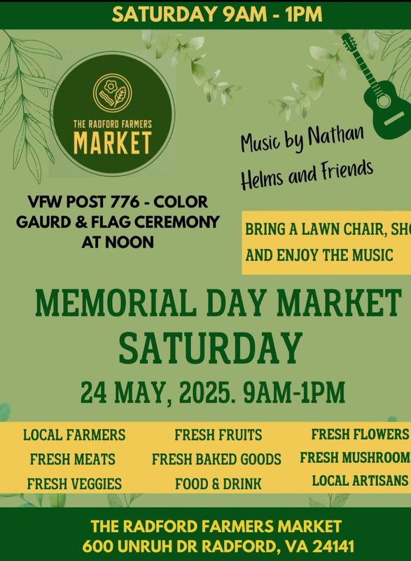 2025 Radford Farmers Memorial Day Market with Music from Nathan Helms