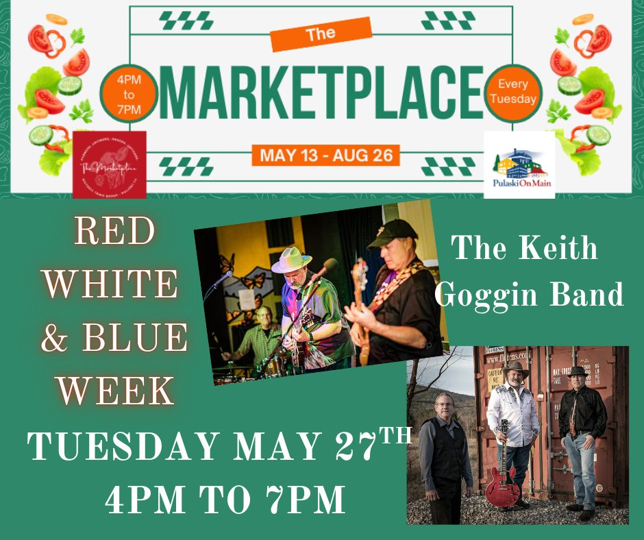 Pulaski on Main continues The Marketplace featuring Music by The Keith Goggin Band on Tuesday, May 27, 2025 at the Pulaski Train Station.