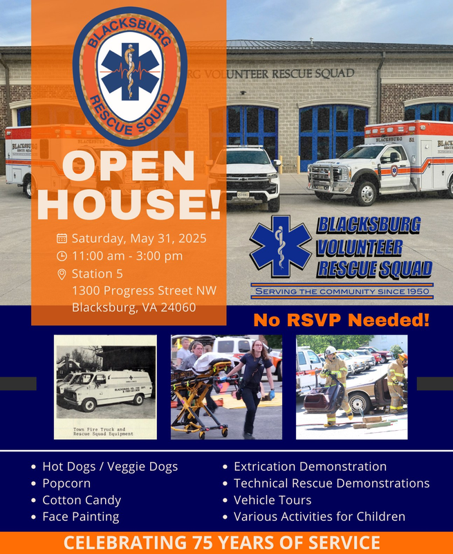 Blacksburg Volunteer Rescue Squad presents their 2025 Open House on Saturday, May 31, 2025 at Station #5.