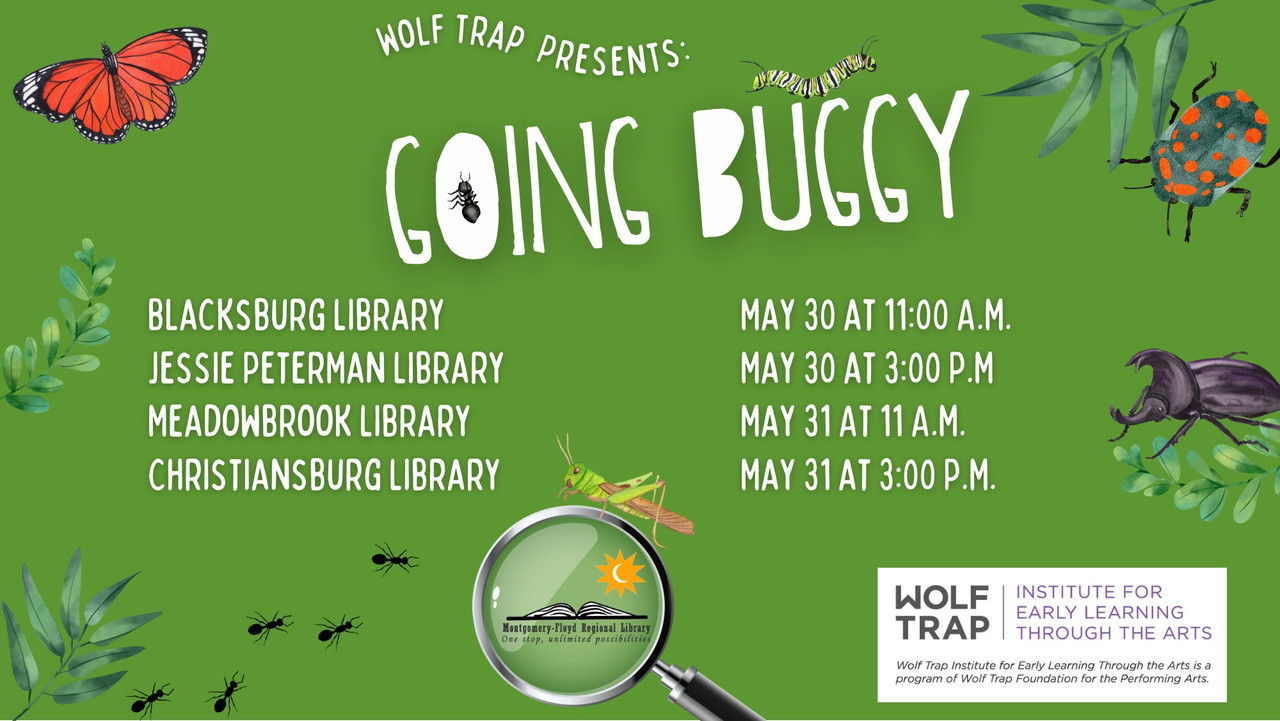 The Jessie Peterman Library hosts the Wolf Trap Institute performing "Going Buggy" on Friday, May 30, 2025.