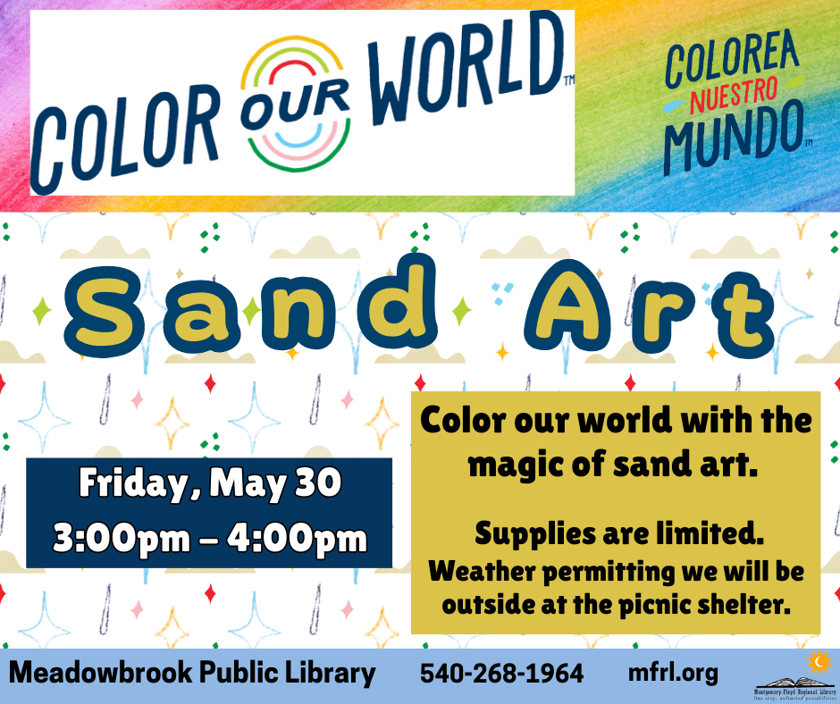 The Meadowbrook Public Library presents Sand Art on Friday, May 30, 2025.