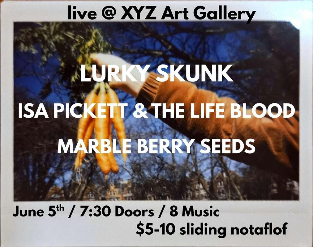 XYZ Art Gallery presents a Three Band Concert with Lurky Skunk, Isa Pickett & The Life Blood and Marble Berry Seeds on Thursday, June 5, 2025.