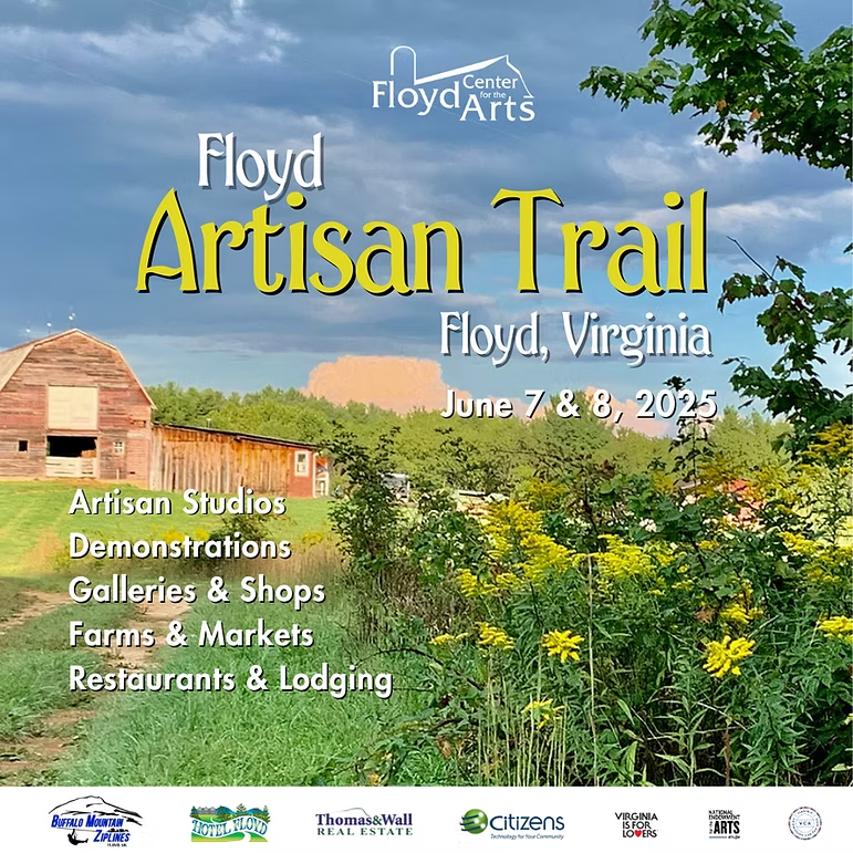The Floyd Center for the Arts presents the 14th Annual Floyd Artisan Trail on Saturday, June 7, 2025 and Sunday, June 8, 2025 at multiple locations across Floyd County.