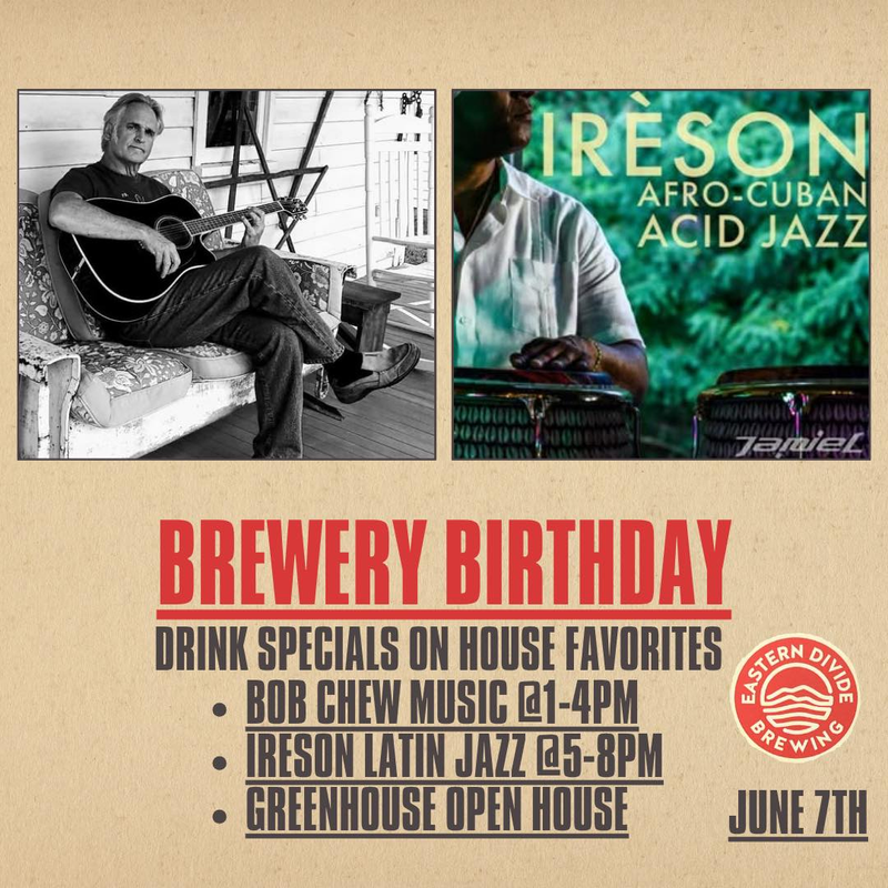 Eastern Divide Brewing presents their 6th Birthday Celebration with Bob Chew and Ireson Jazz in concert on Saturday, June 7, 2025.