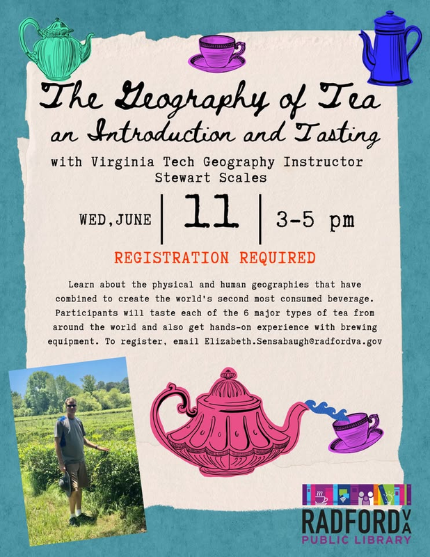 The Radford Public Library presents The Geography of Tea: An Introduction and Tasting on Wednesday, June 11, 2025.