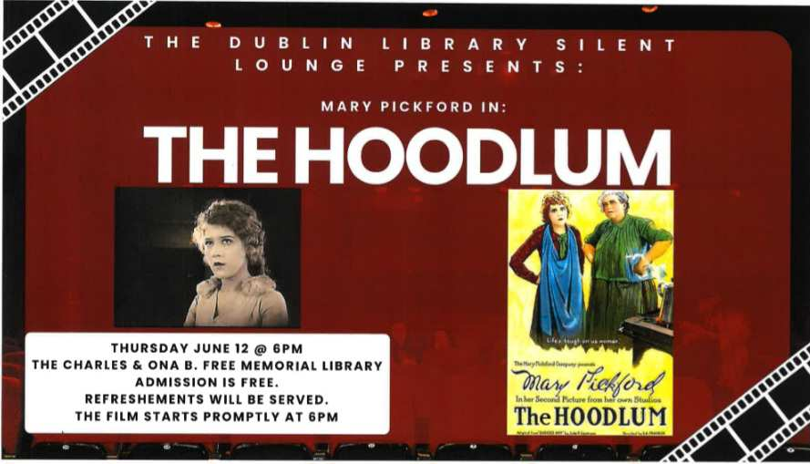 The Charles & Ona B Free Memorial Library (Dublin Library) continues their Silent Lounge Theater featuring "The Hoodlum" on Thursday, June 12, 2025.