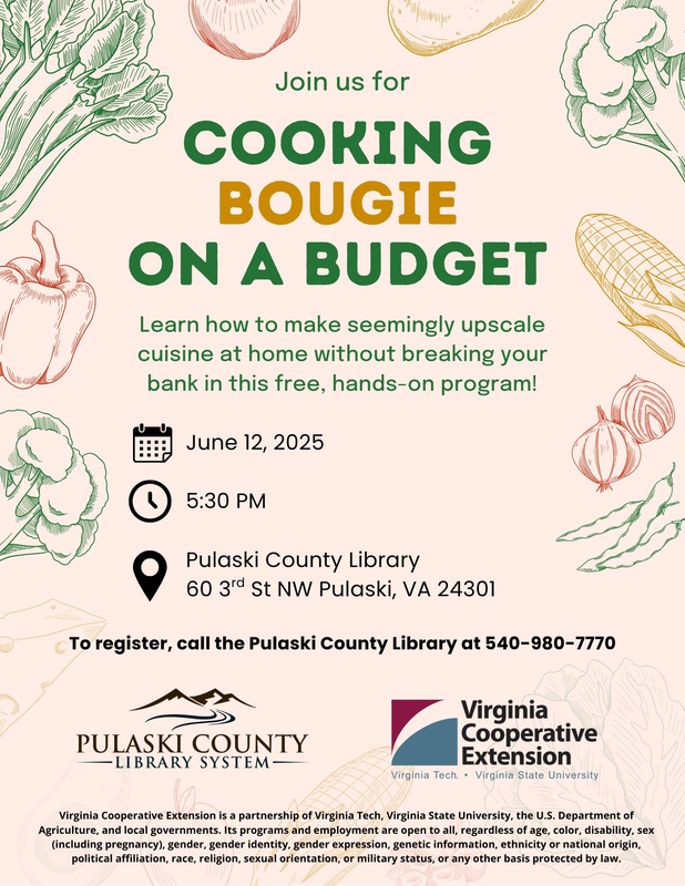 The Pulaski County Library presents the program "Cooking Bougie On A Budget" on Thursday, June 12, 2025.