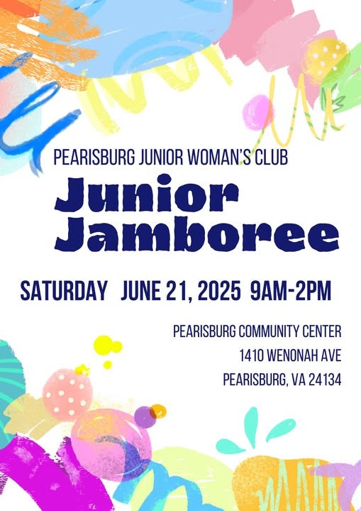 The Pearisburg Junior Woman’s Club 3rd Annual Junior Jamboree will take place on Saturday, June 21st from 9:00 AM - 2:00 PM at the Pearisburg Community Center.