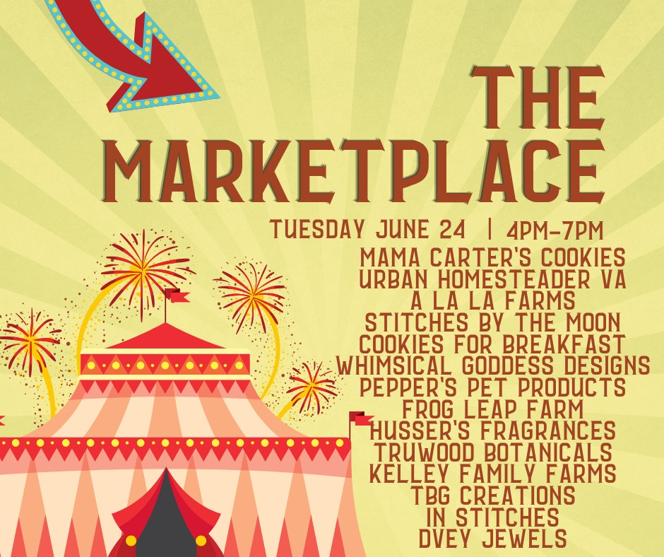 The Marketplace is always full of family fun. This week we will have food trucks, vendors, and refreshments. It's also Circus Night so stop by and show us your best magic tricks!