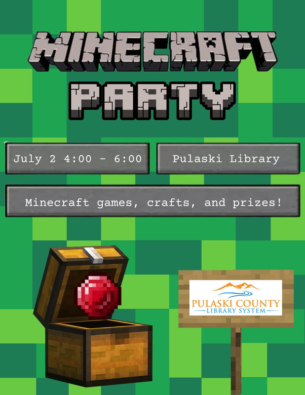 The Pulaski County Library presents a Minecraft Party on Wednesday, July 2, 2025.