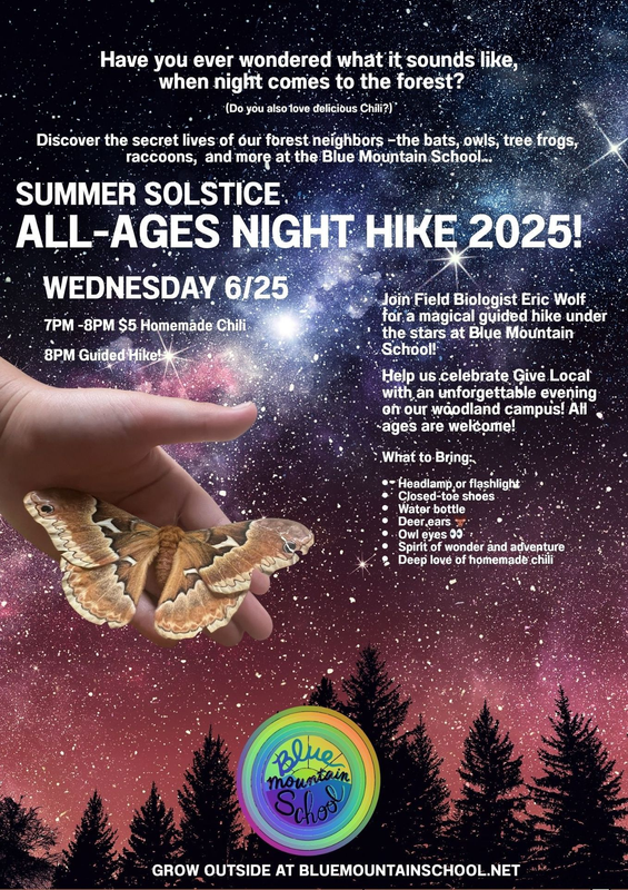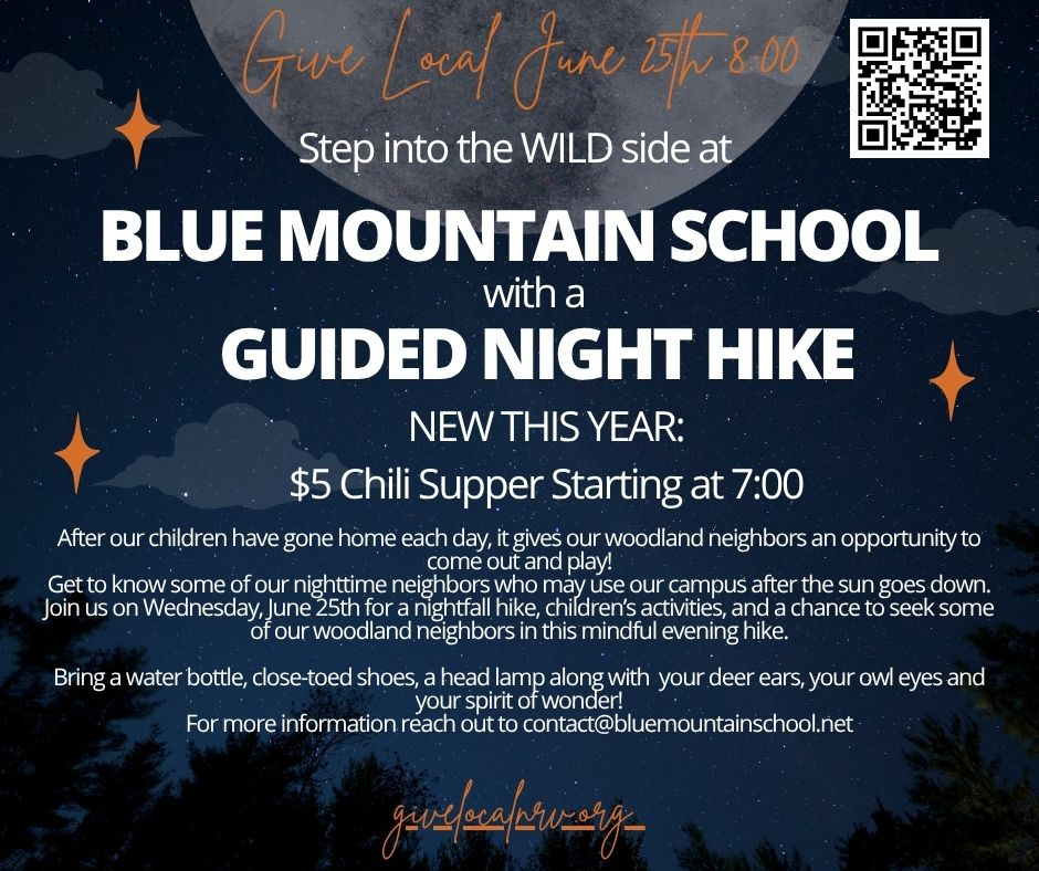 The Blue Mountain School presents their 3rd Annual Guided Night Hike on Wednesday, June 25, 2025.