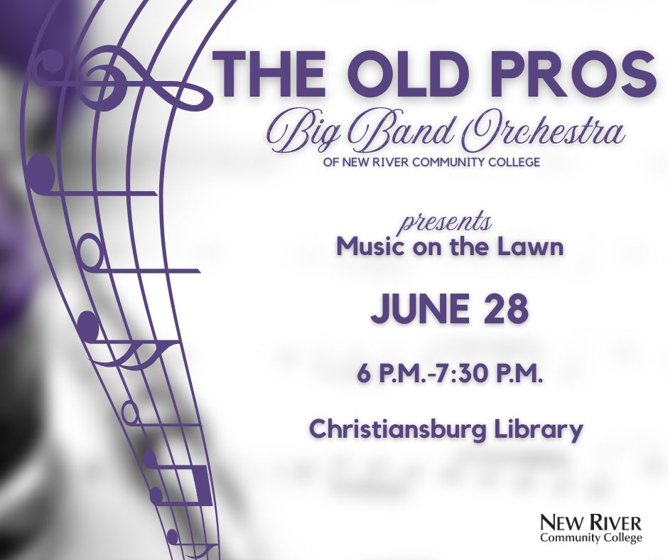 The Christiansburg Library presents the 2025 Music on the Lawn Series Kickoff Concert with The Old Pros Big Band Orchestra on Saturday, June 28, 2025.
