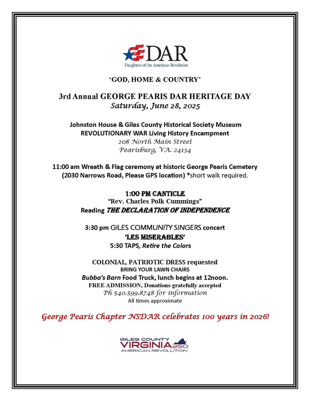 https://www.gilescountyvirginiahistory.com/events/3rd-annual-george-pearis-dar-heritage-day or