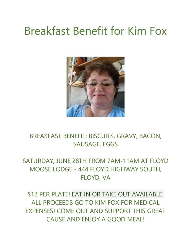 Floyd Moose Lodge 2300 hosts a Breakfast Benefit for Kim Fox on Saturday, June 28, 2025.