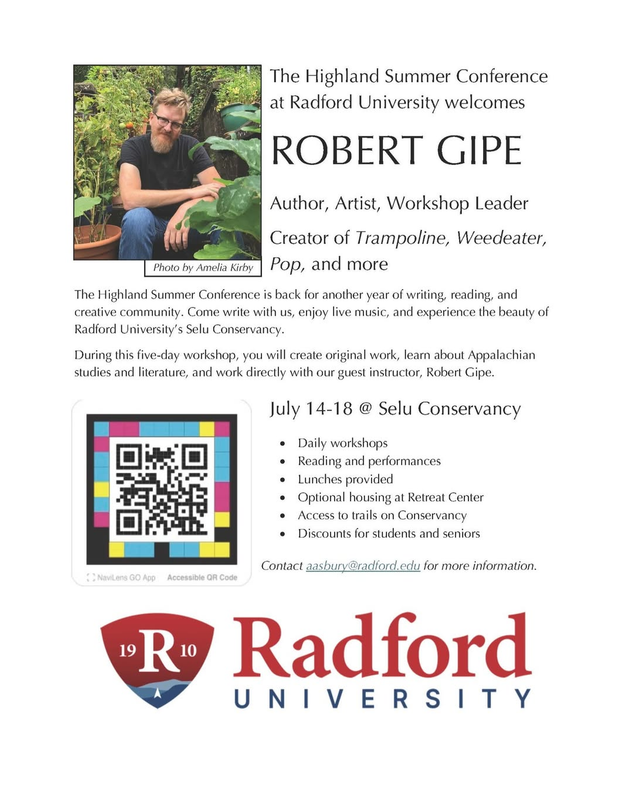 The Highlander Summer Conference is back for another year of writing, reading and creative community. Robert Gipe, author of "Trampoline", "Weedeater" and "Pop" among other works will be reading and speaking as part of The Highland Summer Conference.