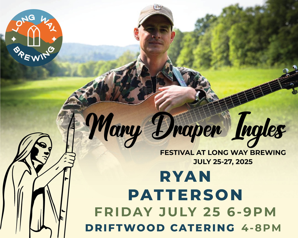 Long Way Brewing presents Ryan Patterson in concert as part of the 2025 Mary Draper Ingles Festival on Friday, July 25, 2025.