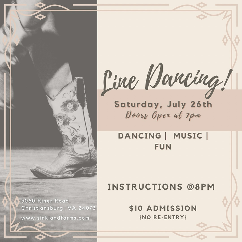 Join Sinkland Farms for a fun-filled night of line dancing! All types of music and all levels of experience welcome.